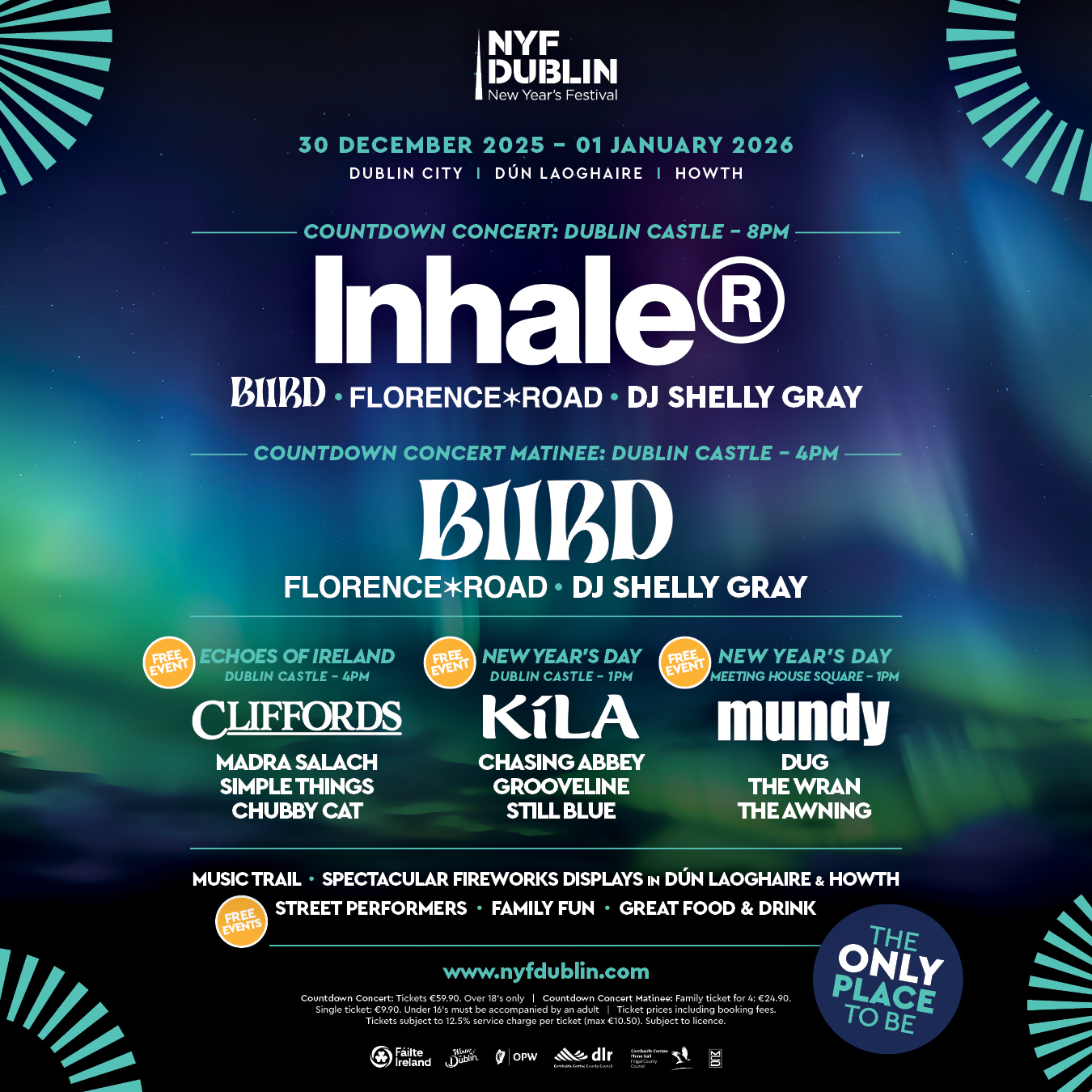 “We’re so pleased to unveil the full programme for this year’s New Year’s Festival Dublin, which promises an unforgettable three-day celebration filled with music, culture, and family-friendly entertainment. With Inhaler headlining the Countdown Concert, BIIRD leading the Midnight Matinee, the return of the NYF Dublin Fireworks Spectacular, and a host of other acts and events now confirmed, the festival is set to be a fantastic way to ring in the new year.